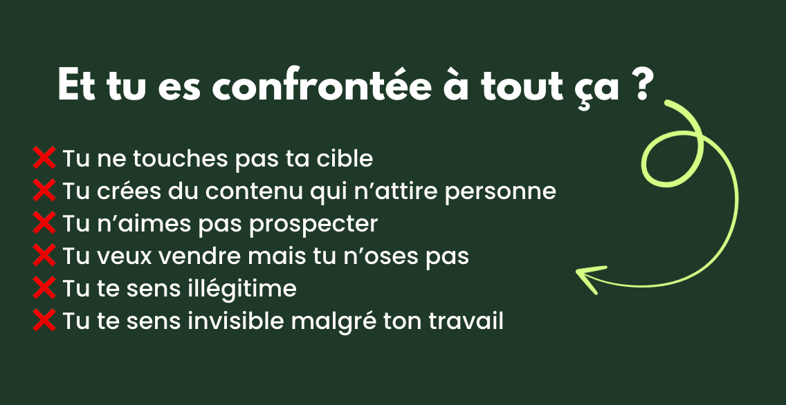 Les résultats parlent d’eux-mêmes : mes clientes trouvent des clients, signent plus de ventes et gagnent en confiance. Les témoignages sont juste au-dessus, va voir et contacte-les pour avoir leur feedback si tu veux !